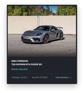 Iconic German performance across coupes, sedans, and SUVs. Seek out 911 GT cars, Turbo S, Taycan, and Cayenne Coupe with must-have aero and PCCB options.